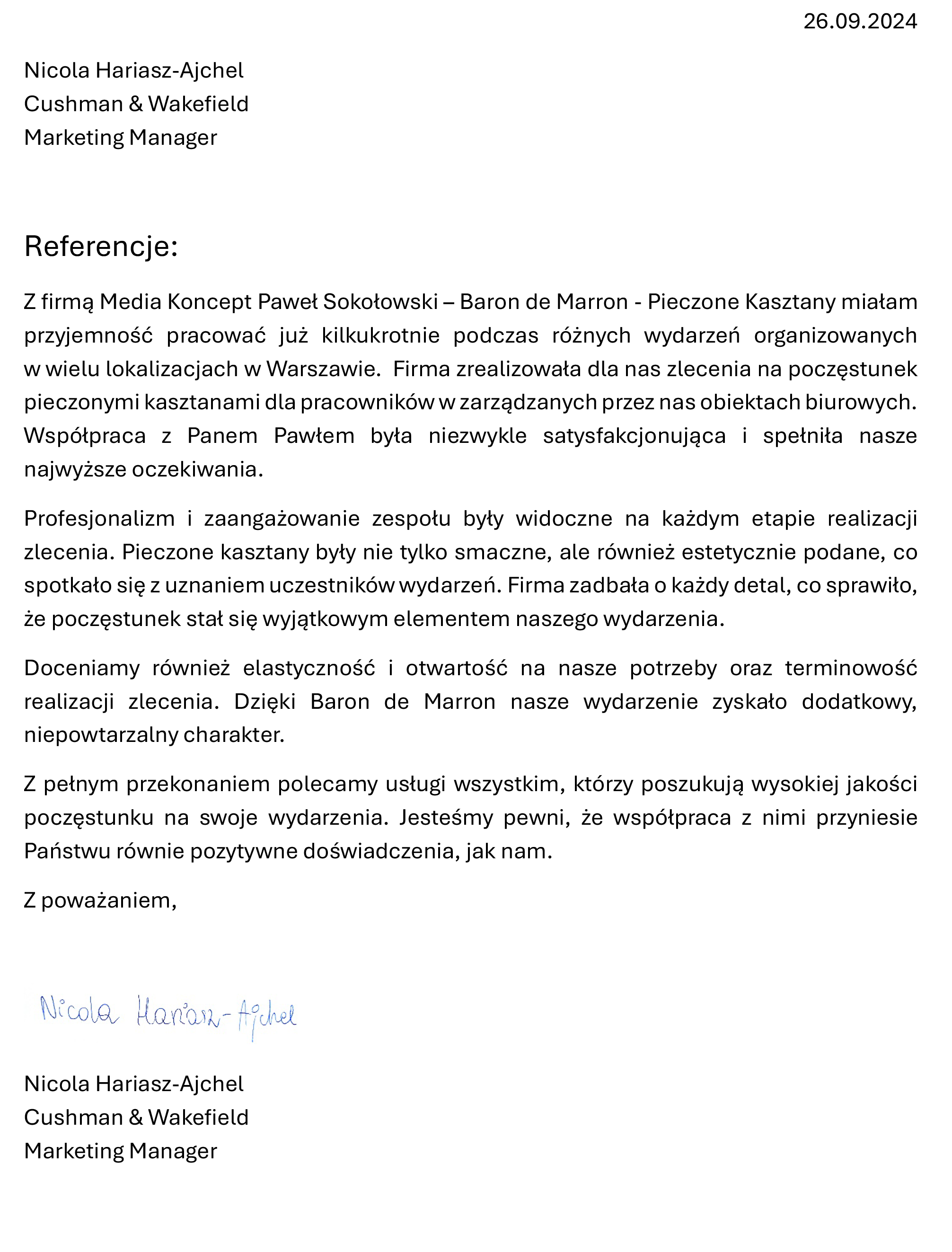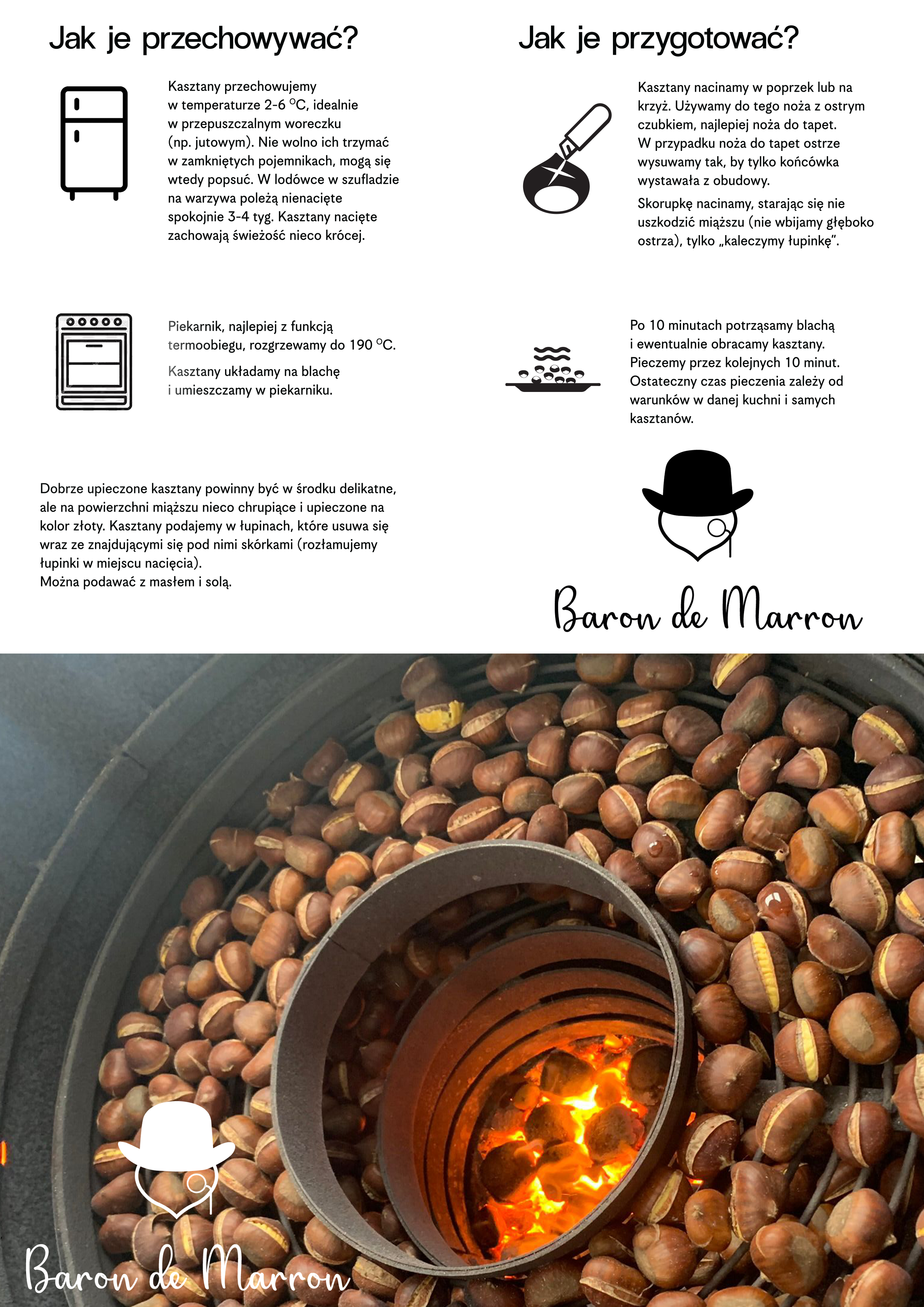 Pieczone kasztany to tradycyjny przysmak, który od wieków rozgrzewał serca i podniebienia w Europie i Azji, szczególnie podczas chłodnych miesięcy. Baron de Marron wprowadza od 21 lat ten wyjątkowy smak do Polski, kultywując tradycję jedzenia kasztanów, która jest nie tylko smaczna, ale i pełna wartości odżywczych. Naszą misją jest podtrzymanie tego pięknego zwyczaju i zachęcenie Polaków do odkrywania smaków natury w ich najprostszej i najczystszej formie. Każda porcja pieczonych kasztanów to chwila przyjemności, która przenosi nas w klimatyczne zakątki świata, gdzie kasztany królują od pokoleń.