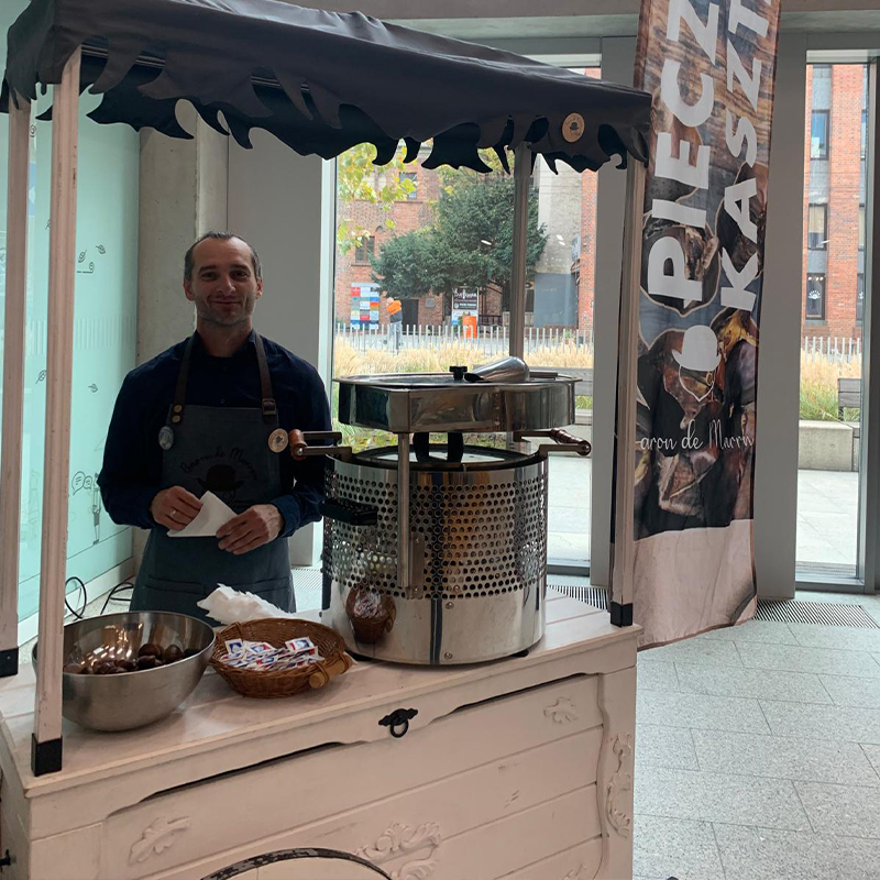 Dowiedz się więcejDodaj wyjątkowy charakter swojemu wydarzeniu, wynajmując nasze mobilne stanowisko z pieczonymi kasztanami! Baron de Marron przyciągnie gości aromatem i ciepłą atmosferą, idealnie wpisując się w świąteczne spotkania, firmowe eventy czy prywatne przyjęcia. To niezapomniana atrakcja, która doda smaku każdej okazji!