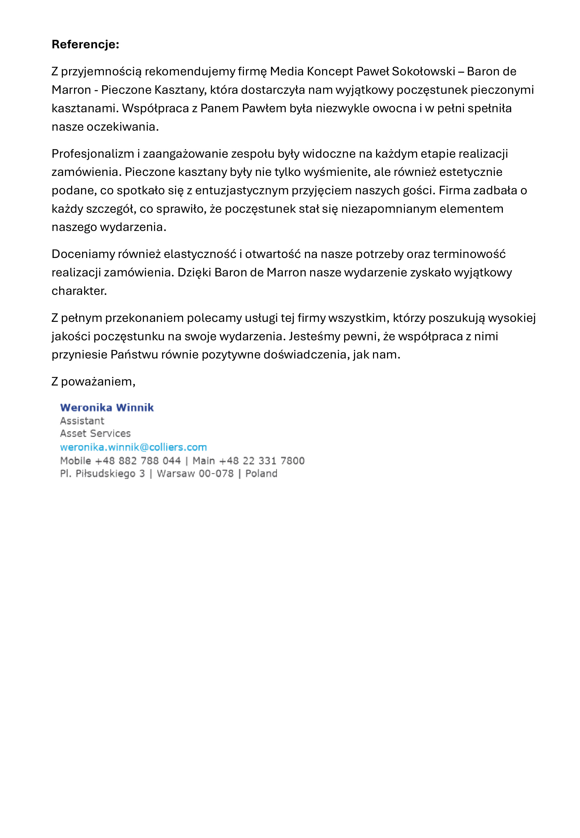 Pieczone kasztany to tradycyjny przysmak, który od wieków rozgrzewał serca i podniebienia w Europie i Azji, szczególnie podczas chłodnych miesięcy. Baron de Marron wprowadza od 21 lat ten wyjątkowy smak do Polski, kultywując tradycję jedzenia kasztanów, która jest nie tylko smaczna, ale i pełna wartości odżywczych. Naszą misją jest podtrzymanie tego pięknego zwyczaju i zachęcenie Polaków do odkrywania smaków natury w ich najprostszej i najczystszej formie. Każda porcja pieczonych kasztanów to chwila przyjemności, która przenosi nas w klimatyczne zakątki świata, gdzie kasztany królują od pokoleń.