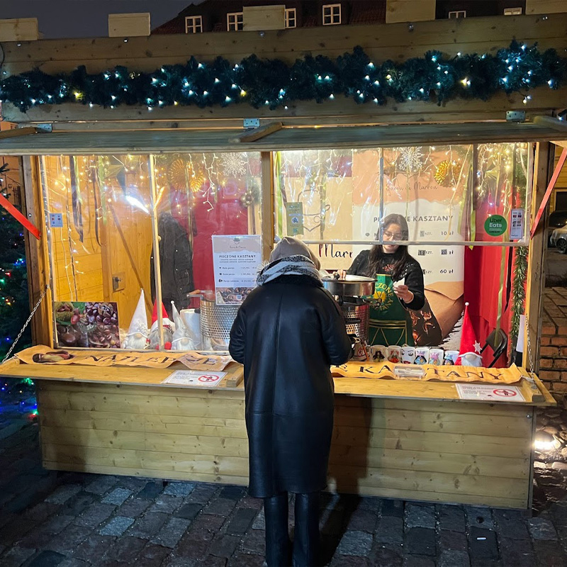 Zapraszamy do odwiedzenia naszych stoisk Baron de Marron na jarmarkach bożonarodzeniowych w Warszawie i Katowicach! Od 22 listopada do 5 stycznia rozgrzewamy zimowe serca naszych gości wyjątkowym aromatem pieczonych kasztanów – idealnym dodatkiem do magicznej atmosfery świąt. Nasze kasztany są pieczone z dbałością o każdy szczegół, aby ich smak był pełen słodyczy i delikatności. Zanurz się w ciepło i tradycję, która sprawia, że każdy kęs to niezapomniana chwila. Odwiedź nas i pozwól, aby nasz wyjątkowy przysmak dopełnił Twoje świąteczne wspomnienia!